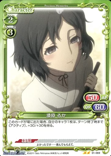 Nombre comercial en japonés: プレシャスメモリーズ/N/キャラクター/緑/STEINS;GATE ブースターパック 01-069[N]:漆原 るか