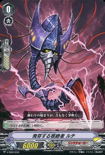 Nombre comercial en japonés: ヴァンガード/ノーマルユニット/リンクジョーカー/トライアルデッキ 伊吹コウジ [VG-V-TD07] V-TD07/010[-]:発芽する根絶者 ルチ