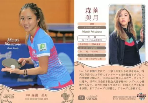 BBM / tarjeta regular / tenis de mesa / BBM2019 Venus Brillante 31 [tarjeta regular] : Mizuki Morizono