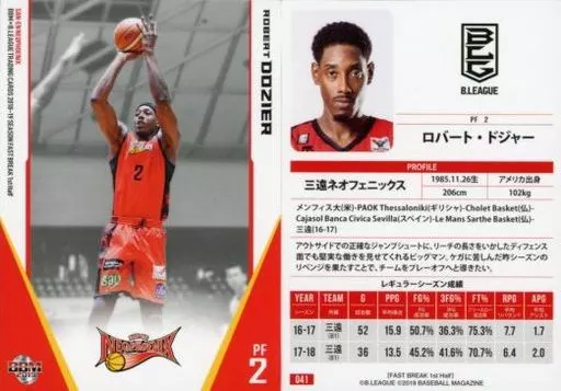 Nombre comercial en japonés: BBM/レギュラーカード/三遠ネオフェニックス/BBM2019 B.LEAGUE TRADING CARDS 2018-19 SEASON FAST BREAK 1st Half 041 [レギュラーカード] : ロバート・ドジャー