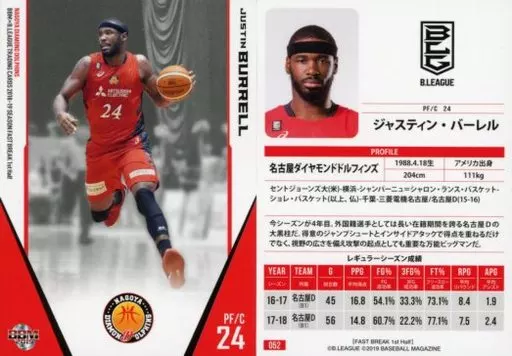 BBM / Regular card / Nagoya Diamond Dolphins / BBM2019 b. LEAGUE TRADING CARDS 2018-19 SEASON FAST BREAK 1 st Half 052 [tarjeta regular] : Justin Burrell