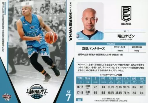Nombre comercial en japonés: BBM/レギュラーカード/京都ハンナリーズ/BBM2019 B.LEAGUE TRADING CARDS 2018-19 SEASON FAST BREAK 1st Half 058 [レギュラーカード] : 晴山ケビン