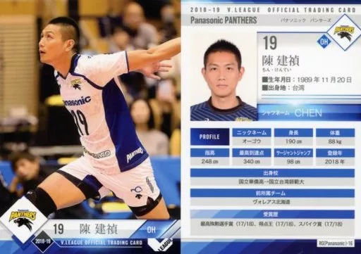 Nombre comercial en japonés: スポーツ/レギュラーカード/2018-19 V・LEAGUE男子公式トレーディングカード RG(Panasonic)-16 [レギュラーカード] : 陳建禎