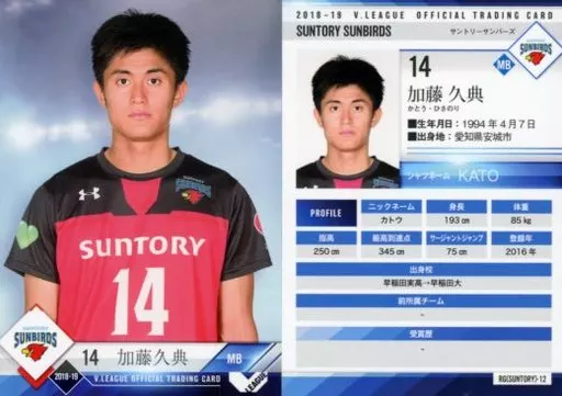 Nombre comercial en japonés: スポーツ/レギュラーカード/2018-19 V・LEAGUE男子公式トレーディングカード RG(SUNTORY)-12 [レギュラーカード] : 加藤久典