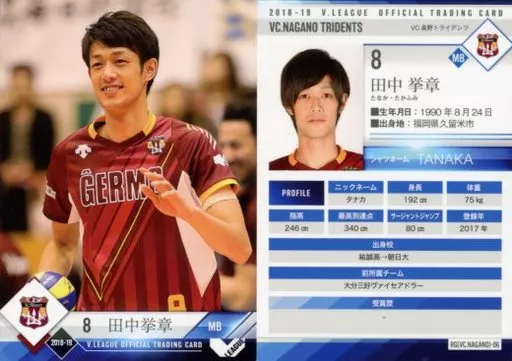 Nombre comercial en japonés: スポーツ/レギュラーカード/2018-19 V・LEAGUE男子公式トレーディングカード RG(VC.NAGANO)-06 [レギュラーカード] : 田中挙章