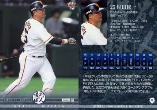 Nombre comercial en japonés: BBM/レギュラーカード/読売ジャイアンツ/BBM2019 惜別球人 09 [レギュラーカード] : 村田修一