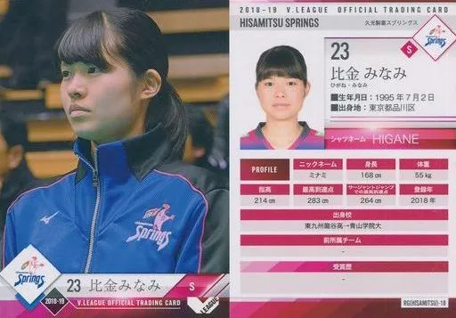 Nombre comercial en japonés: スポーツ/レギュラーカード/-/2018-19 V・LEAGUE女子公式トレーディングカード RG(HISAMITSU)-18 [レギュラーカード] : 比金みなみ