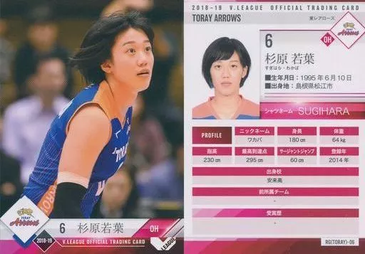 Nombre comercial en japonés: スポーツ/レギュラーカード/-/2018-19 V・LEAGUE女子公式トレーディングカード RG(TORAY)-06 [レギュラーカード] : 杉原若葉