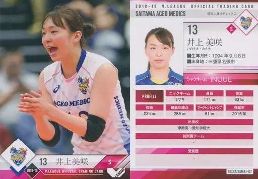 Sport/Regular Card/-/ 2018 19 v LEAGUE WOMEN'S OFFICIAL TRADING CARD RG (SAITAMA) -07 [tarjeta regular] : Misaki Inoue