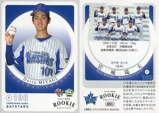 Nombre comercial en japonés: BBM/レギュラーカード/横浜DeNAベイスターズ/BBM2019 ルーキーエディション 091 [レギュラーカード] : 宮城滝太