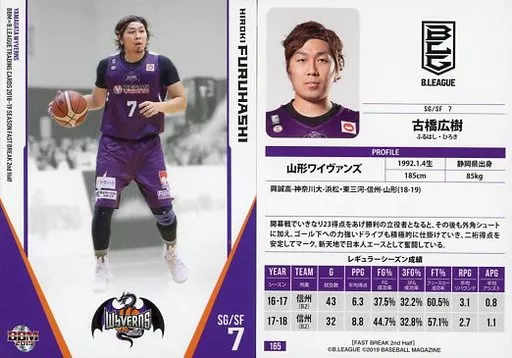 BBM / Regular card / Yamagata Wyvens/BBM2019 b. LEAGUE TRADING CARDS 2018-19 SEASON FAST BREAK 2 nd Half 165 [tarjeta regular] : Hiroki Furuhashi