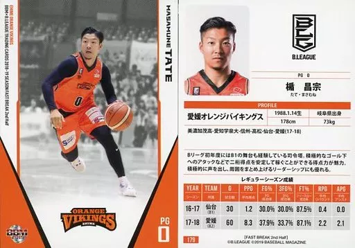 Nombre comercial en japonés: BBM/レギュラーカード/愛媛オレンジバイキングス/BBM2019 B.LEAGUE TRADING CARDS 2018-19 SEASON FAST BREAK 2nd Half 179 [レギュラーカード] : 楯昌宗