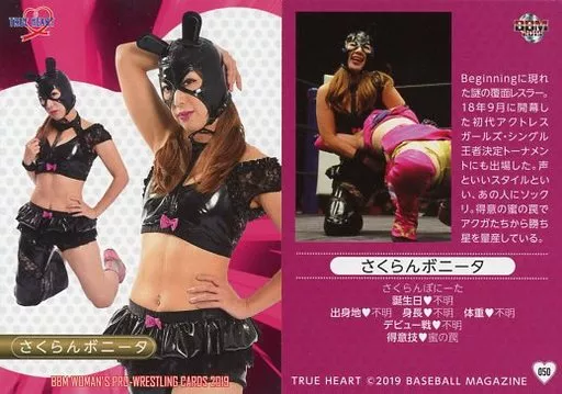 Nombre comercial en japonés: BBM/レギュラーカード/BBM 女子プロレスカード2019 TRUE HEART 050 [レギュラーカード] : さくらんボニータ