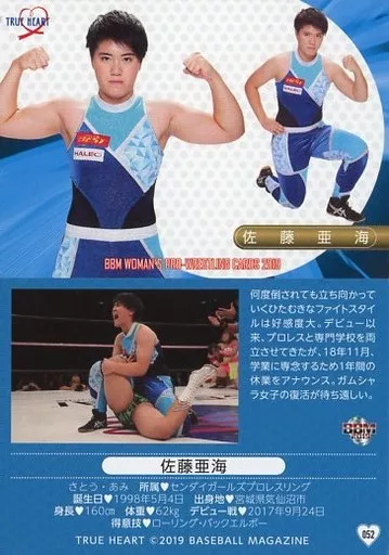 Nombre comercial en japonés: BBM/レギュラーカード/BBM 女子プロレスカード2019 TRUE HEART 052 [レギュラーカード] : 佐藤亜海