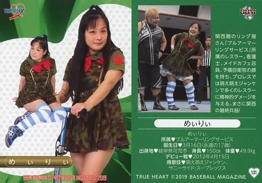 Nombre comercial en japonés: BBM/レギュラーカード/BBM 女子プロレスカード2019 TRUE HEART 131 [レギュラーカード] : めぃりぃ