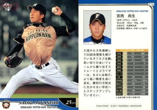 Nombre comercial en japonés: BBM/レギュラーカード/BBM2011 北海道日本ハムファイターズ F14 [レギュラーカード] : 宮西尚生