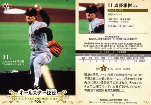 Nombre comercial en japonés: BBM/レギュラーカード/読売ジャイアンツ/BBM2014 オールスター伝説90’s 35 [レギュラーカード] : 斎藤雅樹