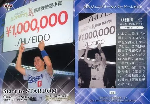 Nombre comercial en japonés: BBM/レギュラーカード/中日ドラゴンズ/BBM2014 オールスター伝説90’s 83 [レギュラーカード] : 種田仁