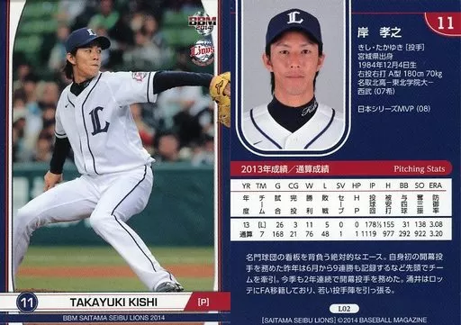 Nombre comercial en japonés: BBM/レギュラーカード/埼玉西武ライオンズ/BBM2014 埼玉西武ライオンズ L02 [レギュラーカード] : 岸孝之