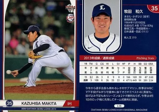Nombre comercial en japonés: BBM/レギュラーカード/埼玉西武ライオンズ/BBM2014 埼玉西武ライオンズ L18 [レギュラーカード] : 牧田和久