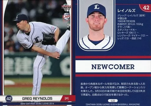 Nombre comercial en japonés: BBM/レギュラーカード/埼玉西武ライオンズ/BBM2014 埼玉西武ライオンズ L22 [レギュラーカード] : レイノルズ