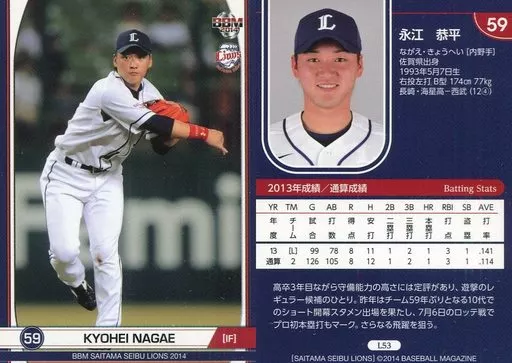 Nombre comercial en japonés: BBM/レギュラーカード/埼玉西武ライオンズ/BBM2014 埼玉西武ライオンズ L53 [レギュラーカード] : 永江恭平