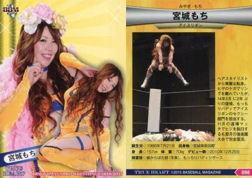 Nombre comercial en japonés: BBM/レギュラーカード/BBM 女子プロレスカード2015 TRUE HEART 098 [レギュラーカード] : 宮城もち