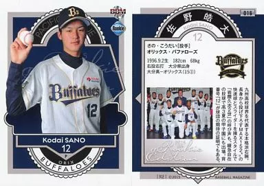 Nombre comercial en japonés: BBM/レギュラーカード/オリックス・バファローズ/BBM2015 ベースボールカード ルーキーエディション 016 [レギュラーカード] : 佐野皓大