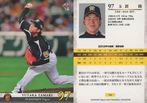 Nombre comercial en japonés: BBM/レギュラーカード/BBM2014 阪神タイガース T32 [レギュラーカード] : 玉置隆