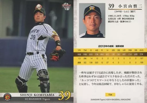 Nombre comercial en japonés: BBM/レギュラーカード/BBM2014 阪神タイガース T34 [レギュラーカード] : 小宮山慎二