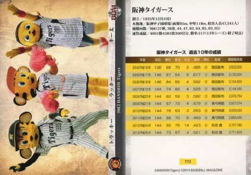 Nombre comercial en japonés: BBM/レギュラーカード/BBM2014 阪神タイガース T72 [レギュラーカード] : トラッキー/ラッキー/キー太