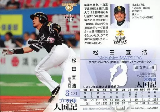 Nombre comercial en japonés: BBM/レギュラーカード/現役/福岡ソフトバンクホークス/BBM2011 ヒストリックコレクション 人国記 都道府県別ヒーロー列伝 123 [レギュラーカード] : 松田宣浩