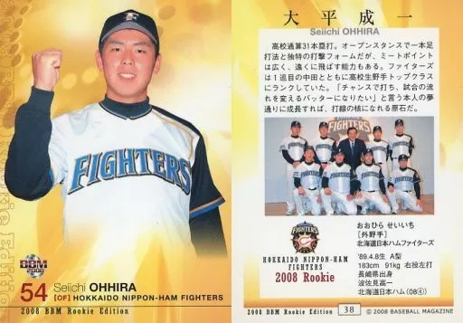Nombre comercial en japonés: BBM/レギュラーカード/ルーキーレギュラー/北海道日本ハムファイターズ/BBM2008 ルーキーエディション 38 [レギュラーカード] : 大平成一