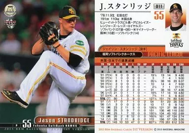 Nombre comercial en japonés: BBM/レギュラーカード/福岡ソフトバンクホークス/BBM2015 ベースボールカード 1stバージョン 011 [レギュラーカード] : J.スタンリッジ