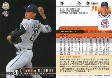 Nombre comercial en japonés: BBM/レギュラーカード/埼玉西武ライオンズ/BBM2015 ベースボールカード 1stバージョン 114 [レギュラーカード] : 野上亮磨