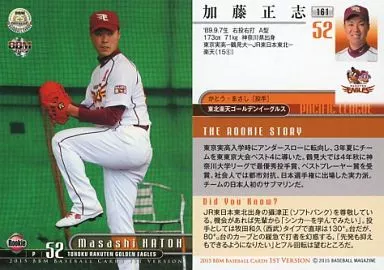 Nombre comercial en japonés: BBM/レギュラーカード/ルーキー/東北楽天ゴールデンイーグルス/BBM2015 ベースボールカード 1stバージョン 161 [レギュラーカード] : 加藤正志