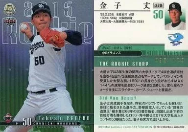 Nombre comercial en japonés: BBM/レギュラーカード/ルーキー/中日ドラゴンズ/BBM2015 ベースボールカード 1stバージョン 270[レギュラーカード]:金子丈(ルーキーパラレル)(/100)