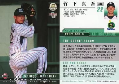 Nombre comercial en japonés: BBM/レギュラーカード/ルーキー/東京ヤクルトスワローズ/BBM2015 ベースボールカード 1stバージョン 318 [レギュラーカード] : 竹下真吾