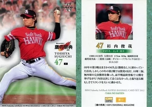 Nombre comercial en japonés: BBM/レギュラーカード/BBM2012 福岡ソフトバンクホークス「鷹の祭典」 鷹13 [レギュラーカード] : 杉内俊哉