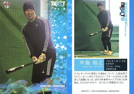 Nombre comercial en japonés: BBM/レギュラーカード/BBM2014 中島裕之「NEXT」 04 [レギュラーカード] : ビリー・ビーン