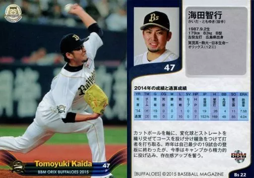 Nombre comercial en japonés: BBM/レギュラーカード/BBM2015 オリックス・バファローズ Bs22 [レギュラーカード] : 海田智行