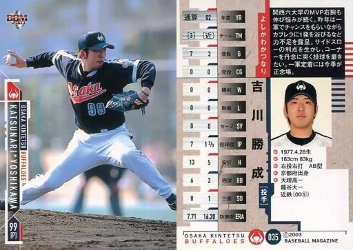 Nombre comercial en japonés: BBM/レギュラーカード/-/大阪近鉄バファローズ/BBM2003 大阪近鉄バファローズ 35 [レギュラーカード] : 吉川勝成