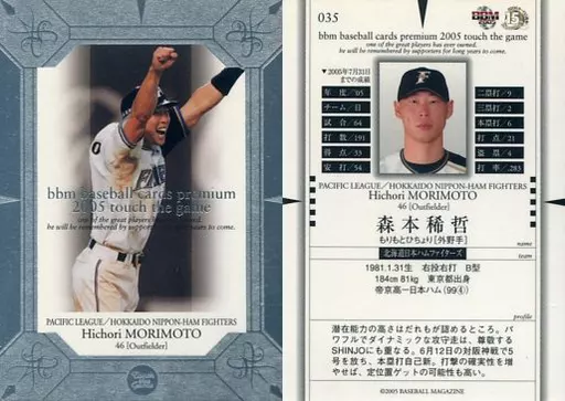 Nombre comercial en japonés: BBM/レギュラーカード/-/北海道日本ハムファイターズ/BBM2005 Touch the game(タッチ・ザ・ゲーム) 035 [レギュラーカード] : 森本稀哲