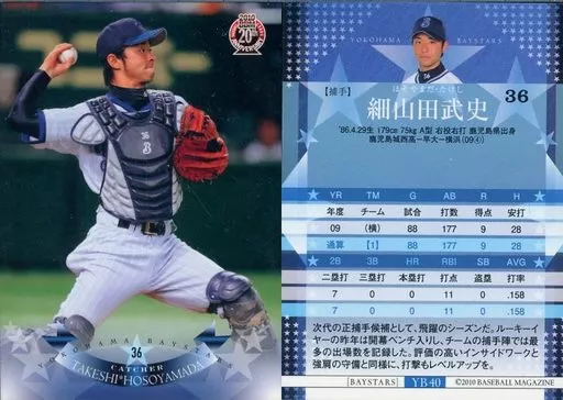 Nombre comercial en japonés: BBM/レギュラーカード/-/横浜ベイスターズ/BBM2010 横浜ベイスターズ YB40 [レギュラーカード] : 細山田武史