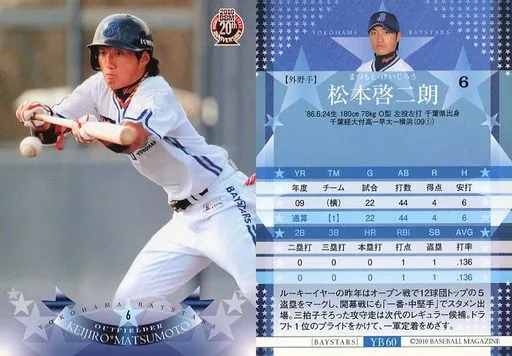 Nombre comercial en japonés: BBM/レギュラーカード/-/横浜ベイスターズ/BBM2010 横浜ベイスターズ YB60 [レギュラーカード] : 松本啓二朗