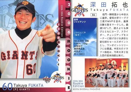 Nombre comercial en japonés: BBM/レギュラーカード/ルーキーレギュラー/読売ジャイアンツ/BBM2006ルーキーエディション 86 [レギュラーカード] : 深田拓也