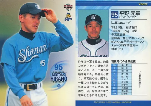 Nombre comercial en japonés: BBM/レギュラーカード/BBM2007 横浜ベイスターズ YB022 [レギュラーカード] : 平野元章