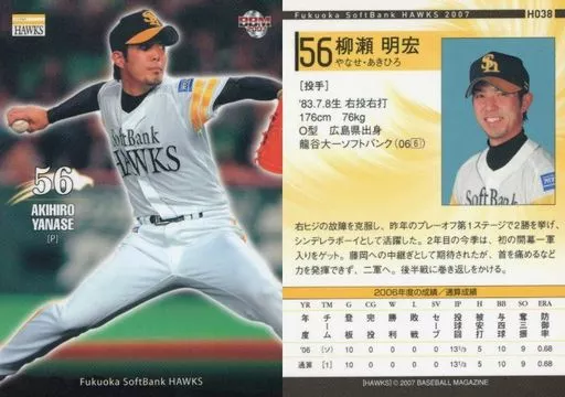 Nombre comercial en japonés: BBM/レギュラーカード/BBM2007 福岡ソフトバンクホークス H038 [レギュラーカード] : 柳瀬明宏