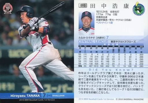 Nombre comercial en japonés: BBM/レギュラーカード/東京ヤクルトスワローズ/BBM 2010 ベースボールカード 1stバージョン 093 [レギュラーカード] : 田中浩康