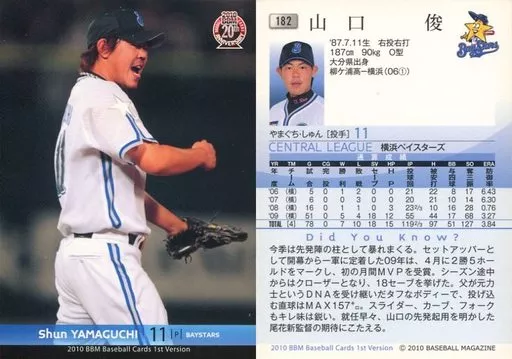 Nombre comercial en japonés: BBM/レギュラーカード/横浜ベイスターズ/BBM 2010 ベースボールカード 1stバージョン 182 [レギュラーカード] : 山口俊